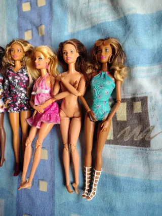 Lotto di 5 bambole Barbie con trucco, corpo e capelli in ottime condizioni. Una sola Barbie difettosa Teresa happening hair, vedi le ultime foto. Si vende come da foto. Non separo il lotto, prezzo fisso. Se vuoi acquistare per unità, cerca l'annuncio della tua bambola nel mio profilo.