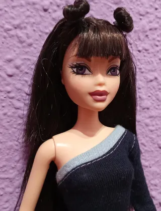 Barbie Fashion Fever della serie prodotta da Mattel nel 2004. Indossa una maglia rosa a costine con scollo a barchetta decorato da un fiore rosa applicato, abbinata a una minigonna grigia con dettaglio nero verticale. È completata da un foulard a fantasia coordinata annodato al collo e fiore rosa applicato sulla maglietta. La Barbie non è mai stata giocata, tuttavia gli abiti hanno lasciato piccoli segni sul corpo che sono, per chi è pratico, facilmente removibili con creme apposite. Valuto offerte ragionevoli e accetto quelle che più si avvicinano al valore reale. Foto reali: no IA. Piedistallo non incluso.