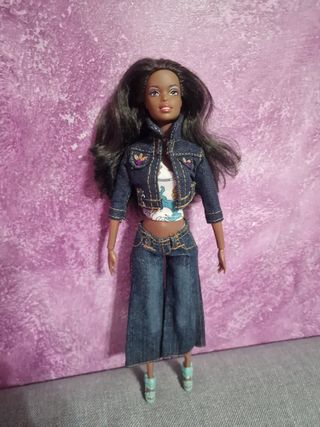 Barbie afro nuova come da foto testa Mattel corpo simil Barbie vestiti nuovi