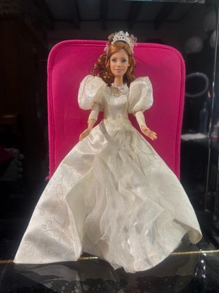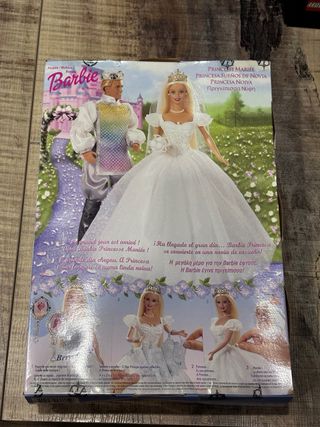 Barbie Sposa Principessa dell'anno 2001. La bambola funziona ancora ed emette suoni. Include il suo corsetto, il velo e i tacchi. Con i capelli brillanti e morbidi. Le foto servono come descrizione. Non include il piedistallo.