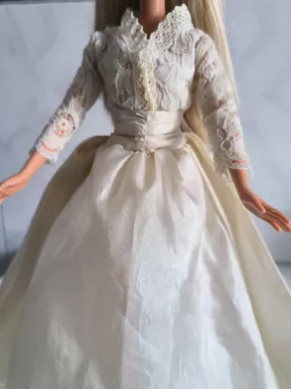 Abito da sposa per Barbie in stile vintage, bianco satinato con pizzo e dettagli argentati. Gonna ampia con strati, corpo strutturato e finiture curate. Design elegante e molto vistoso, perfetto per bambole Barbie da sposa o per completare una collezione. Articolo vintage, pensato per chi apprezza i dettagli e i pezzi con presenza. * Le spedizioni avvengono con Seur, Impost e Correos. * Non si accettano resi. #barbie #barbienovia #barbievintage #barbiecoleccion #barbiefashion #barbiedress #barbieoutfit #barbieclothes