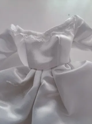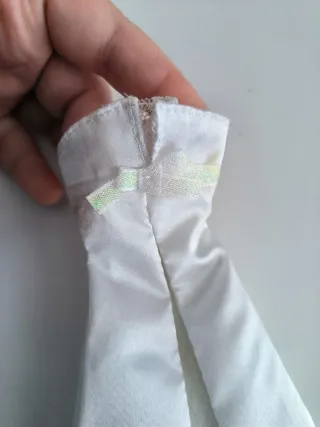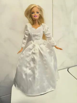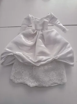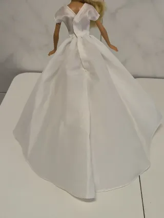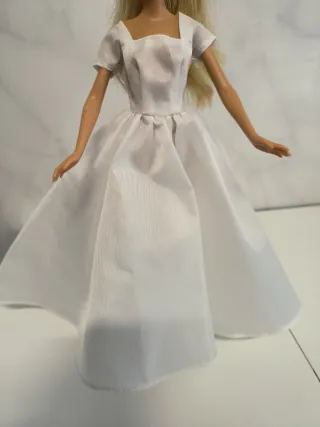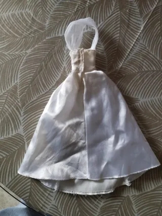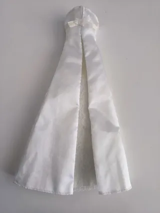 Vestito da sposa per bambola Barbie o simile. Manca il fermaglio per legare e il taglio è sistemato come si vede nelle foto, da qui il prezzo. Bambola non inclusa.