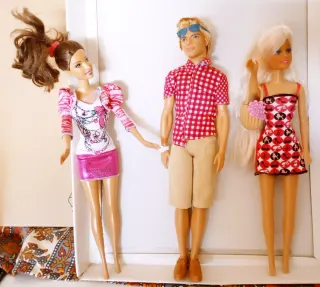Set di 6 bambole Barbie e 1 Ken con abiti. Include: - 1 Barbie da sposa con velo e mazzo di fiori. - 3 Barbie con vestito estivo corto. - 2 Barbie Biancaneve. - 1 Ken, vestito per passeggiata con occhiali e orologio. - Inoltre 4 abiti da sera lunghi, una gonna con giacca e un vestito corto. - 1 cavallo bianco. TUTTO IL LOTTO È IN VENDITA.