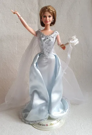 Barbie da collezione, vestita da sposa. Un dettaglio prezioso per collezionisti. Senza scarpe. - Abito da sposa con velo. - Include mazzo di fiori. - Base espositiva con testo Days of our Lives Marlena Evans. Marlena Evans è un personaggio di finzione di una serie americana. Senza scatola.