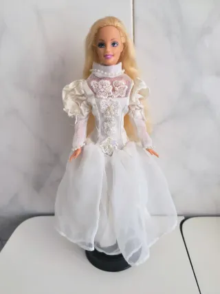 Barbie Principessa Sposa Mattel, anno 1998. Vestito da sposa bianco con dettagli brillanti. Corona argentata. Include specchio da mano con immagine di Barbie.