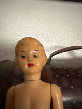 Bambola vintage con uno stile simile a quello di Barbie. Ideale per collezionisti. Corpo di plastica. Capelli biondi. Trucco sul viso. Testa in celluloide.