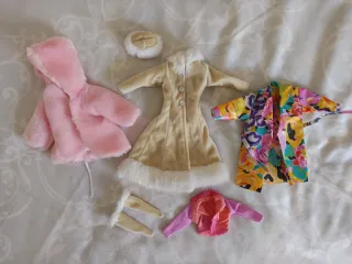 Consegna di abbigliamento per bambola Barbie, ideale per collezionisti o per giocare. Vintage. - Cappotto rosa in pelo sintetico con cappuccio, completamente foderato, Barbie nel mondo. - Cappotto lungo beige con stivali e berretto, Barbie nel mondo. - Impermeabile o gabardina a fiori, pret-a-porter. - Giacca rosa e arancione, con il nome di Barbie. L'ultima foto è solo informativa. Per qualsiasi domanda, contattami. **IMPORTO MINIMO PER LA SPEDIZIONE TRAMITE APP: 15,-€. **Possibilità anche di consegna a mano a Madrid. Prezzo regolato per il lotto. Per ogni pezzo un prezzo diverso.