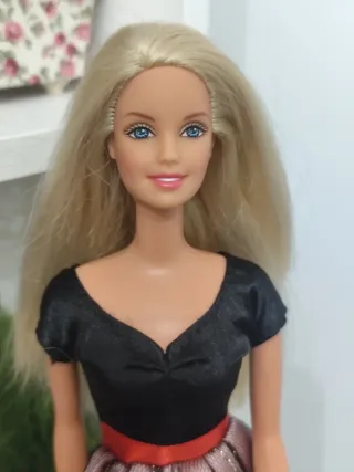 Barbie classica con capelli biondi e occhi azzurri. - Anno 1998. - Abito nero con dettagli. - Gonna con cintura rossa.