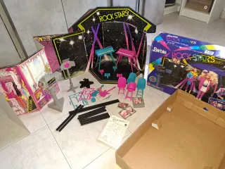 Set da gioco Barbie Rock Stars, completo di accessori per creare un vero palco musicale. Scatola rovinata