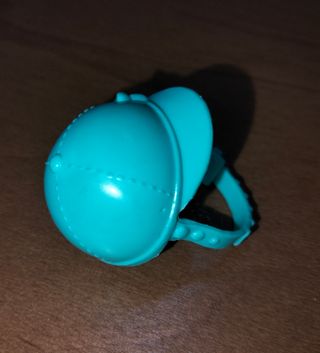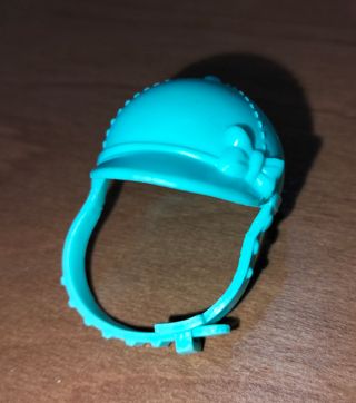 Casco azzurro per bambola Barbie Chelsea, stile cavallerizza. - Decorazione a fiocco. - Bordino con perline. - Cinturino regolabile.