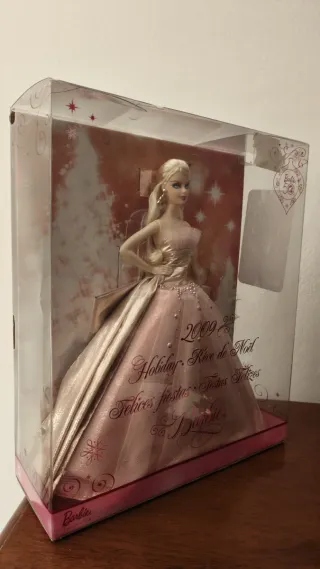 Bambola Barbie Holiday Collection del 2009, un pezzo da collezione. - Abito da sera rosa cipria con dettagli scintillanti. - Fiocco dorato in vita. - Orecchini pendenti. - Scatola originale inclusa.