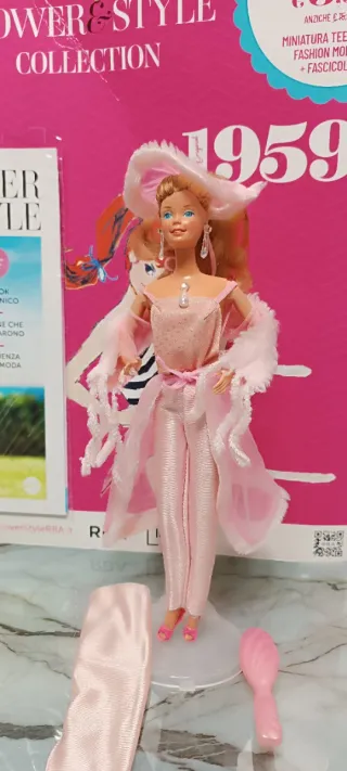 Barbie con un abito iconico ispirato al glamour di ieri e di oggi. Un pezzo da collezione per rivivere la magia di Barbie. - Abito rosa - Dettagli in pizzo. - Capelli biondi Lunghi reinpiantati in qualche punto per renderli più folti