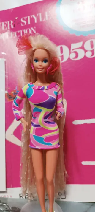 Barbie Pink and Pretty made in filippine - Accessori inclusi: scialle in pelliccia, 2 stole gonna e spazzola. Gioielli repro e scarpe non originali qualche ciocca è stata aggiunta con sistema a catena