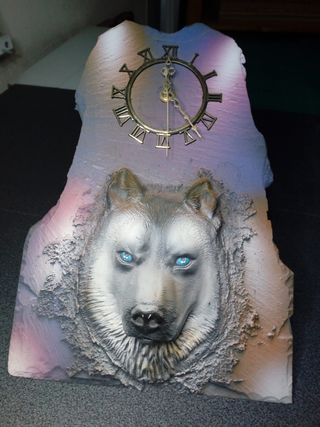 orologio da parete 3D su pietra nera, dipinto a mano