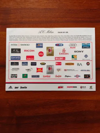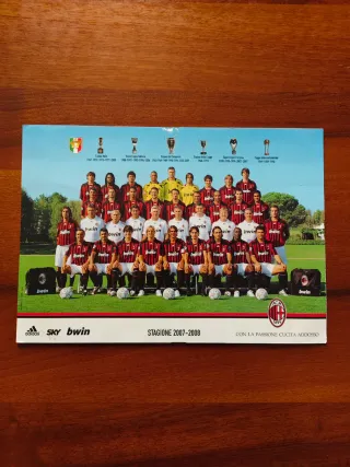 Cartolina ufficiale della squadra AC Milan per la stagione 2007-2008. Immagine della squadra al completo. Presenta i trofei vinti dalla squadra. Sul retro sono indicati tutti i nomi delle persone raffigurate. Prezzo NON TRATTABILE. Eventuali costi aggiuntivi sono a carico dell'acquirente.