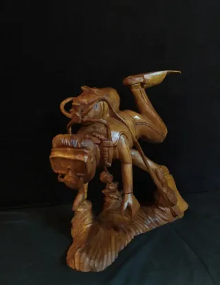 Statua artigianale raffigurante un subacqueo, realizzata in legno. - Intagliata a mano. - Materiale: legno.