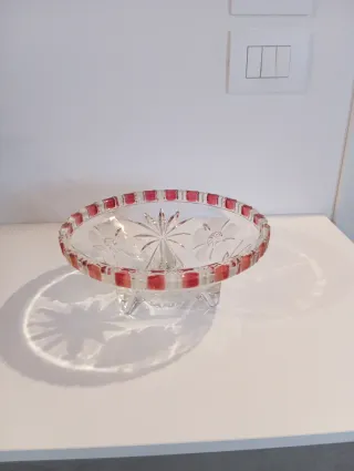 Porta frutta in vetro con bordo rosso