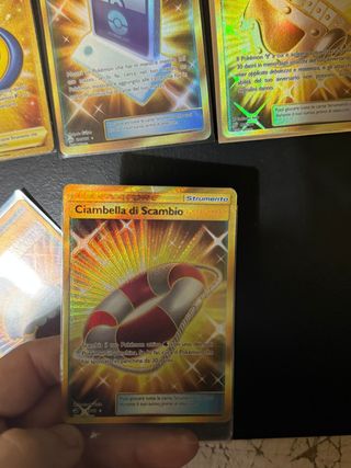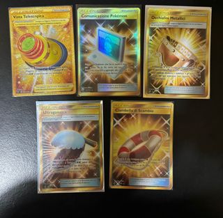 Lotto di 5 carte Pokémon - Vista Telescopica - Comunicazione Pokémon - Occhialini Metallici - Ultraganase - Ciambella di Scambio Lotto Pokemon Gold Fuoriserie Ita Legami inossidabili, Gioco di Squadra, voltaggio sfolgorante e trionfo dei draghi Tutto in condizioni near mint tranne ciambella di scambio (piccolo difetto un foto) Prezzo affare per tutto il lotto