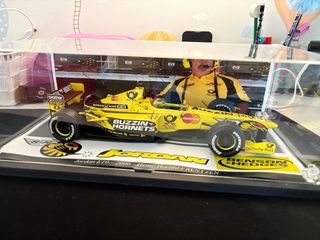 Modellino da collezione della monoposto di Formula 1 Jordan EJ10 del 2000, guidata da Heinz-Harald Frentzen. - Sponsor: Buzzin Hornets, Deutsche Post, Benson & Hedges, Brother, Honda. - Dettagli in scala 1:18. - Base espositiva inclusa.