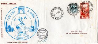 Busta Primo Volo 2° Giro Aereo Romagna 1953