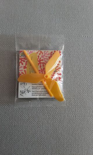 Elica volante a forma di elica, di colore arancione chiaro. Sorpresa patatine San Carlo Junior 2025 Nuova, nella confezine originale sigillata - Design ispirato a Spongebob. - Include adesivi per personalizzare l'elica.