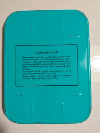 Vassoio vintage Coca-Cola con raffigurato il calendario Coca del 1891. Dimensioni 28x21