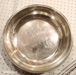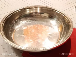 Elegante ciotola in Sheffield, un pezzo di pregio della Mappin & Webb. - Design classico e raffinato. - Finitura lucida in metallo. - Bordo decorato con motivo intrecciato.