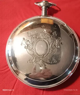 Elegante portaoggetti in argento 800 a forma di orologio da taschino con decorazioni finemente intagliate. Grammi 284 - Materiale: Argento 800 - Design: Decorato con motivi floreali e un ovale centrale. - Finitura: Lucida con dettagli bruniti.