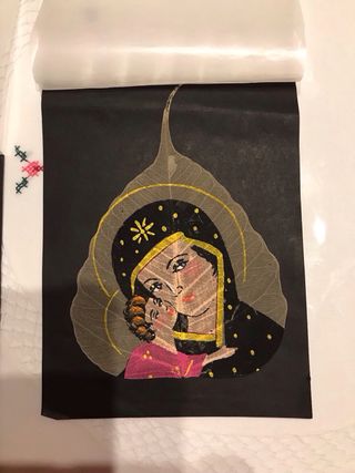 Bellissimo dipinto su foglia secca raffigurante il volto di Gesù. - Opera d'arte unica. - Soggetto religioso. - Dettagli finemente dipinti.