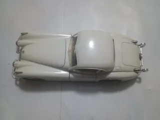 Modellino della Jaguar XK 120 in scala 1:24, prodotto da Burago. L'auto è di colore bianco e presenta il cofano e la portiera apribili. - Scala 1:24 - Marca Burago - Modello Jaguar XK 120 - Colore bianco - Cofano apribile - Portiera apribile