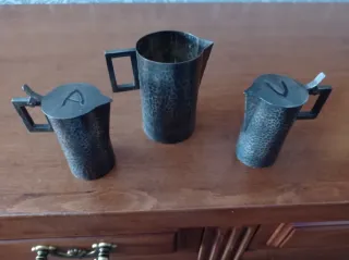 Elegante set composto da una caraffa e sei bicchieri in peltro, con una purezza del 95%, . Ogni pezzo è finemente decorato con scene in rilievo, con trama della Vendemmia. - Caraffa con coperchio e manico. - Sei bicchieri coordinati. - Decorazioni dettagliate in stile classico.