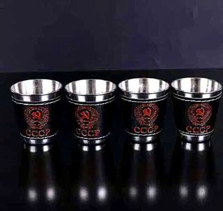 Set di quattro bicchieri shot in acciaio inossidabile con design CCCP. Ideali per gustare le tue bevande preferite. Li ho portati personalmente da Minsk (Bielorussia) 5 anni fa. - Realizzati in acciaio inossidabile. - Decorati con l'emblema dell'URSS (CCCP). - Design elegante e sobrio. - Perfetti per collezionisti o appassionati di storia.