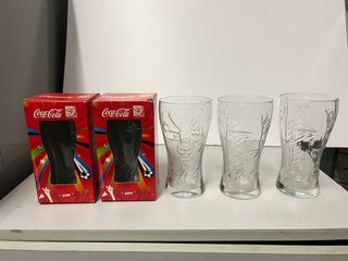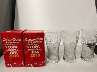 Set di 4 bicchieri commemorattivi Coca-Cola del Mondiale FIFA 2010. Design commemorativo del Mondiale FIFA 2010. Marca: Coca-Cola. Materiale: Vetro.