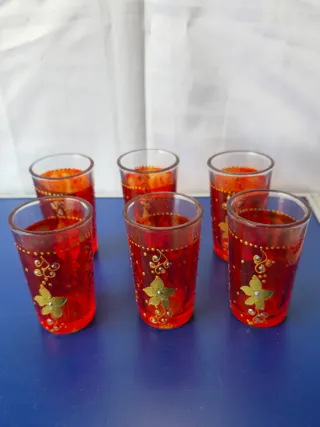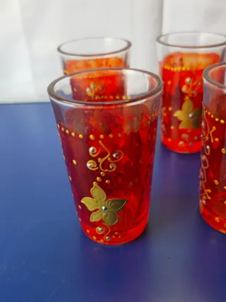 Set 6 bicchieri vintage rossi decorati