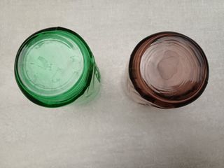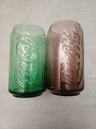 Bicchieri Coca Cola n. 2 - in vetro - colore sfumato verde e marrone/nero - altezza 12 cm circa - diametro 6 cm circa. Nuovo