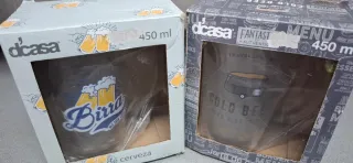 Set de 6 jarras de cerveza de la marca Damm Estrella Damm. Perfectas para disfrutar de tu cerveza favorita. - Diseño clásico y elegante. - Ideales para coleccionistas o amantes de la cerveza.