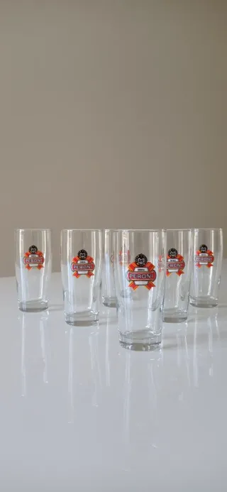 Set di 6 bicchieri pubblicitari della Birra Peroni, risalenti agli anni '80. Ideali per collezionisti o amanti del marchio. - Design vintage. - Logo Peroni ben visibile.