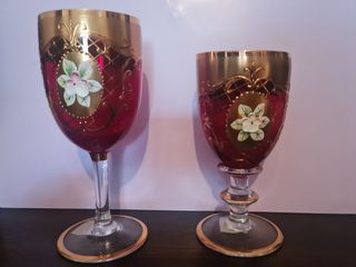 Acquistati nel 2003, a Venezia, sono realizzati in vetro di murano intarsiato in oro e dipinti a mano. È un regalo fatto agli sposi quando erano sposati, ogni bicchiere rappresenta la sposa e lo sposo.