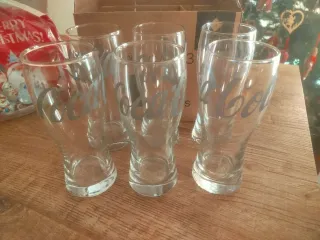 Set di 6 bicchieri in vetro con logo Coca Cola.possibilita' di acquistare altri articoli - Design classico e iconico. - Ideali per bevande fredde.