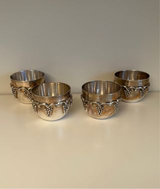 Bellissimo set di 4 piccole coppette vintage in silver plate. Ottime condizioni, usurate dal tempo. - Set di 4 bicchieri - Motivo a grappolo d'uva - Silver plate