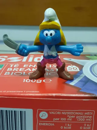 Personaggio Puffetta Pirata Smurf del 2006. -Puffetta pirata - Peyo 2006 - Indossa gilet bianca, pantaloni rosa e stivali marroni. - Impugna una spada nella mano destra. - Altezza: 5,5cm - Condizioni dell'Oggetto: Buone L'oggetto è in buone condizioni presenta i problemi come la punta della un po' schiacciata e usura sul cappello documentati nelle fotografie. Si prega di visionare attentamente tutte le immagini per valutare lo stato di conservazione prima dell'acquisto.