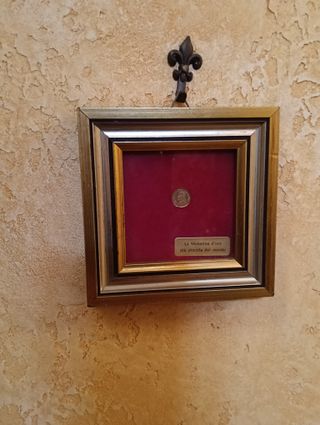 Bellissimo quadretto decorativo con la riproduzione della più piccola del mondo. - Cornice dorata. - Sfondo in velluto rosso. - Targhetta esplicativa inclusa. - Dimensioni cm. 10x10