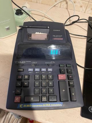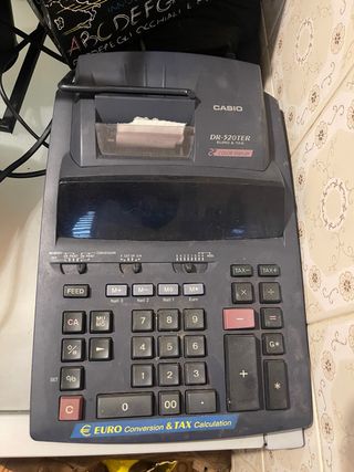 Calcolatrice Casio DR-520TER, perfetta per conversioni Euro e calcoli fiscali. - Funzione di stampa integrata. - Display a colori. - Alimentazione a batteria o rete elettrica.
