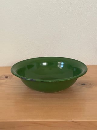 Ciotola vintage in metallo smaltato risalente agli anni 60-70 in colore verde Diametro 20 cm, altezza 5,5 cm Perfetto per esposizione o collezione. Posso fare spedizioni combinate con altri oggetti da me proposti
