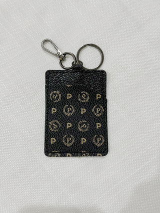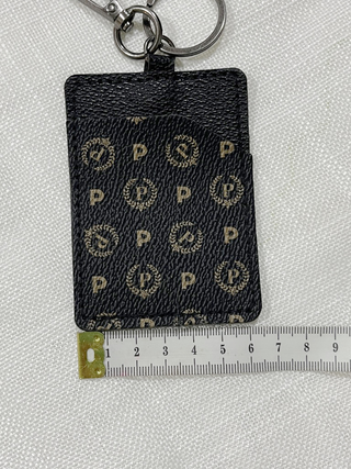 Portachiavi con design monogram Pollini. Nuovo Con anello e moschettone, dimensioni 9x6 cm - Motivo con logo P e corone d'alloro. - Completo di anello e moschettone.