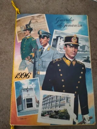 Calendario storico della Guardia di Finanza per l'anno 1996. Presenta 2 difetti che metto in foto. Un piccolo strappo e una scritta a penna. - Illustrazioni di uniformi storiche. - Immagini di edifici della Guardia di Finanza. - Grafica retrò.