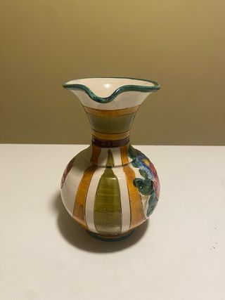 Deliziosa brocca in ceramica dipinta a mano con un motivo floreale. - Manico a corda intrecciata. - Bordi decorati con strisce colorate. - Finitura lucida.