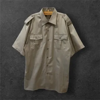 Camisa original del Ejército Italiano, año 1992. Color caqui, manga corta, estilo sahariana. Con hombreras y dos bolsillos frontales. Prenda auténtica de stock militar, muy resistente y en perfecto estado. Ideal para estilo militar o vintage. Medidas: Axila a axila 52cm, Largo 84cm. #militar #vintage #ejercito #camisavintage #streetwear #modahombre