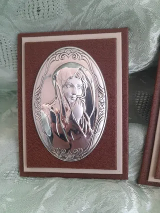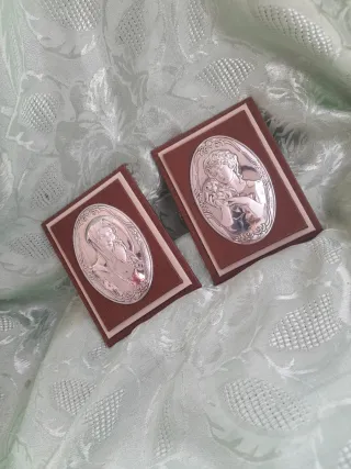 Due immagini sacre in carta con vetro esterno