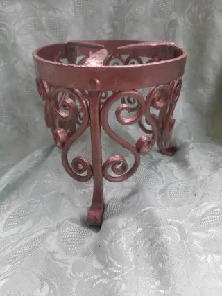 Elegante treppiede in ferro battuto, perfetto per aggiungere un tocco vintage. - Struttura in ferro con finitura color rame. - Design decorato con volute. - Ideale come supporto per vasi o centrotavola.